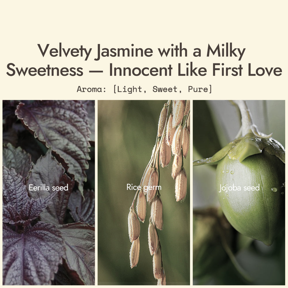 A delicate veil of Moroccan cactus seed oil carries the soft sweetness of blooming jasmine and the airy brightness of neroli. Light, pure, and serenely fresh — like wandering through a royal garden at dawn.