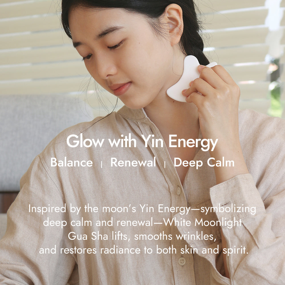 For centuries, the moon’s yin energy has symbolized healing, balance, and renewal. Inspired by its gentle glow, our White Moonlight Gua Sha is crafted from pure mineral ceramic, mirroring the serene radiance of a full moon.
